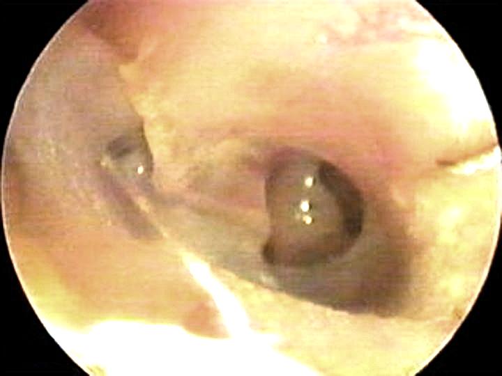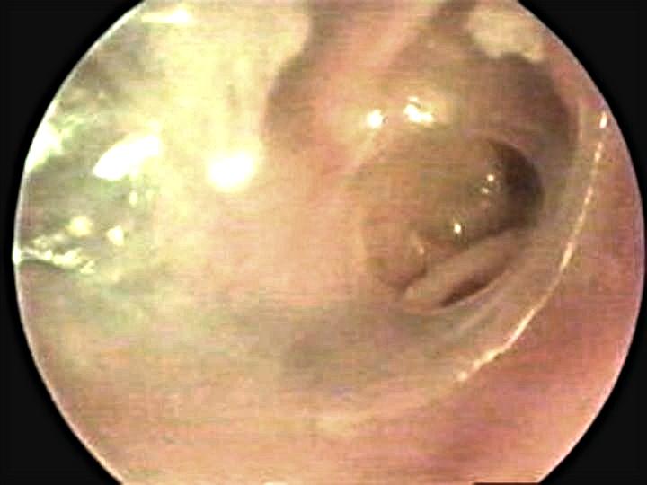 Atelectasia en tímpano izquierdo (bullas en caja timpánica)